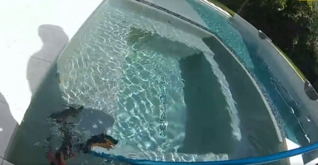 Unwanted visitor swimming naked in the pool.