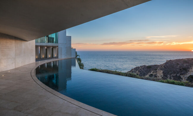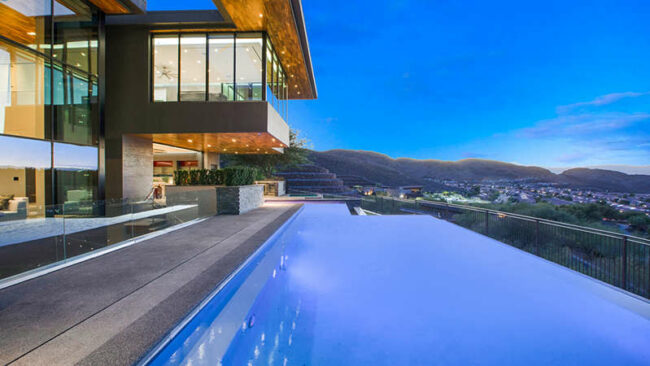 Stunning Las Vegas pool that appears to spill into the city lights.